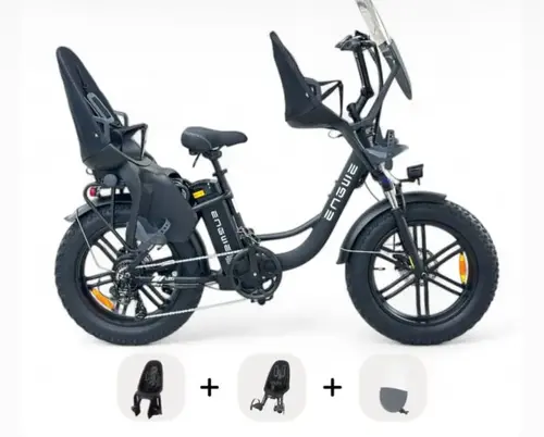 Wij hebben zelf een mamafiets met zitje voorop en achterop en normale fietsen met zitje voorop. Op vakantie hadden we elektrische fietsen met kinderzitjes.