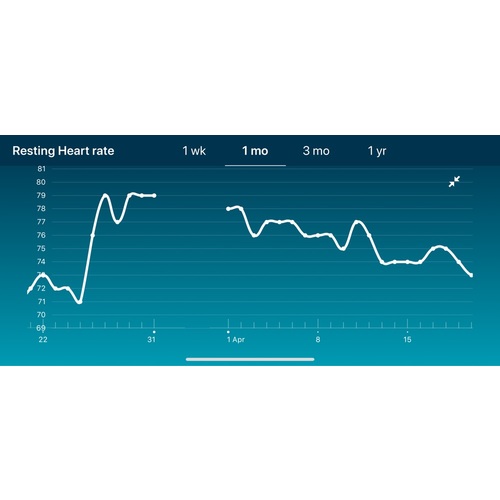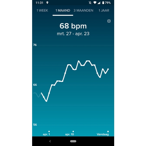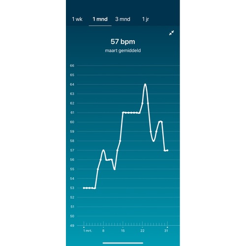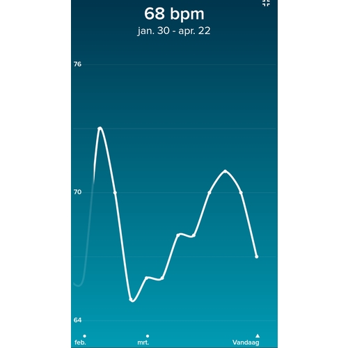 Ik zie dat hij nu gemiddeld 9 a 10 slagen per min hoger is. Ben nu net 4+4 zwanger maar t is wel interessant om dat eens bij te houden. Ik heb een Galaxy watch dus die meet m wel vrij veel.