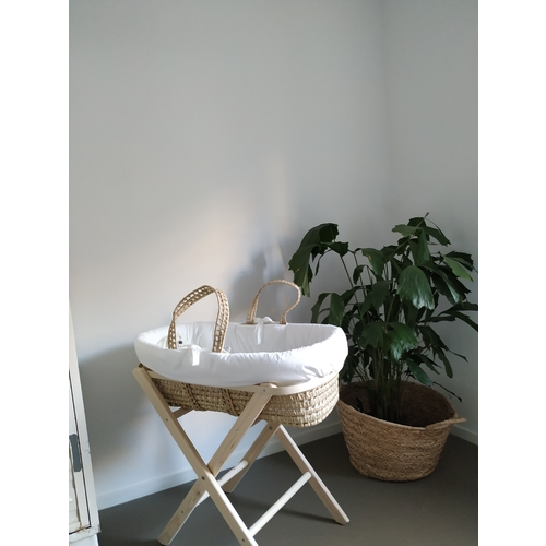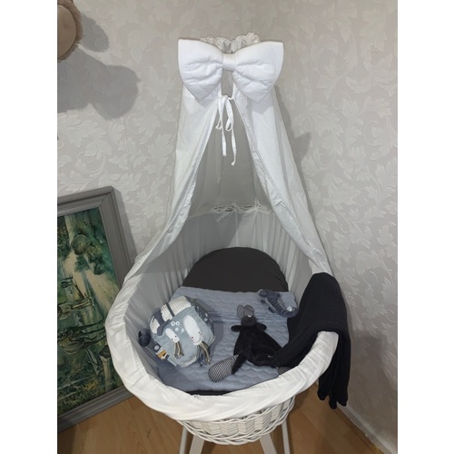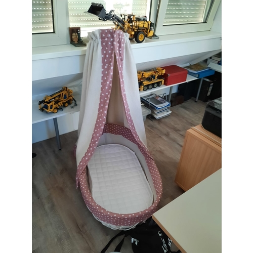 Wieg waar mijn moeder en ik in hebben gelegen, nu 3e generatie. Sluier is van de trouwjurk sleep van m'n moeder.
