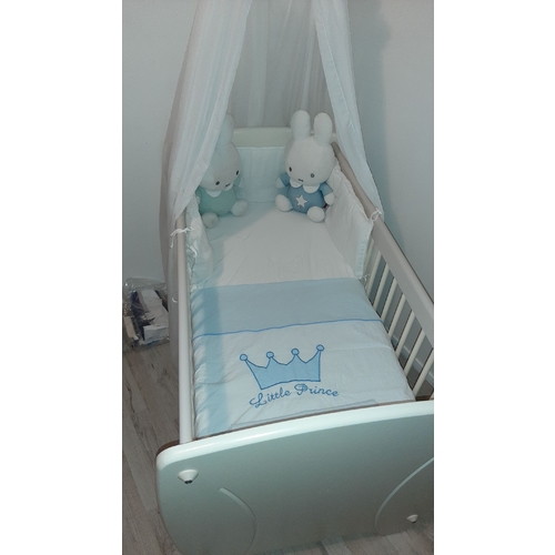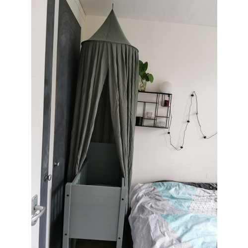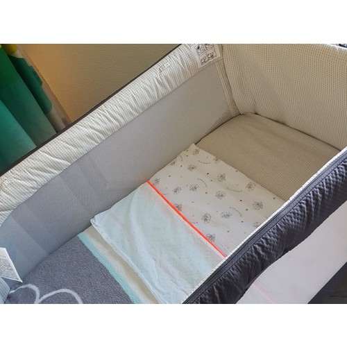 Hier staat het nog niet in elkaar, maar heb de stokke sleepi mini en voor daarna de uitbreidingssets. Voor december een lakentje met daaroverheen een koeka deken met teddy/wafelstof