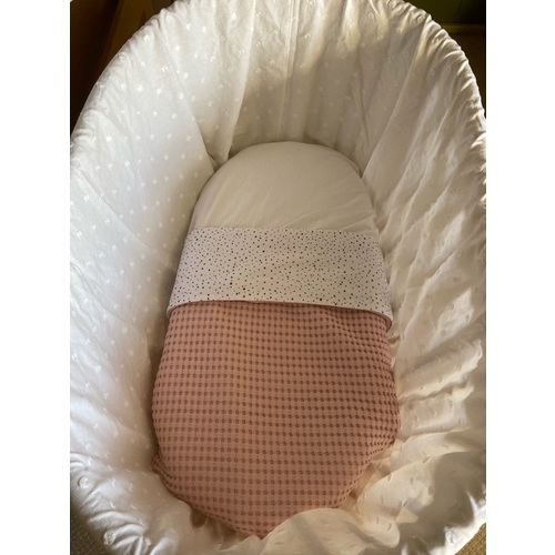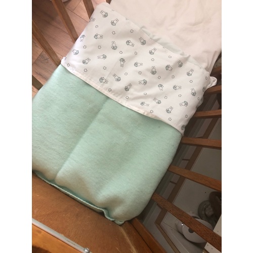 Ligt nu een katoenen deken in met een lakentje. Ik ben nog op zoek naar een wollen dekentje.