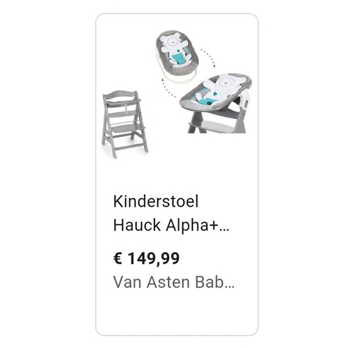 Ikea heeft wel heel goedkoop een kinderstoel. Die is echt meer dan prima. Maar die heeft er helaas geen newborn ding bij. Maar je kan altijd gewoon een wipstoeltje als je die hebt op tafel zetten