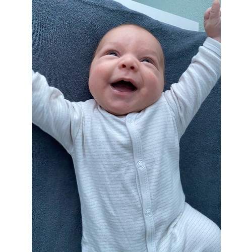 🤩 Hij is een vrolijke baby die heel vaak lacht.