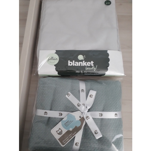 Ik heb er bij de aanschaf van mijn dekentjes op gelet dat het alleen uit katoen en wol bestaat aangezien kraamzorg dat explicities vermeld op hun uitzetlijst. En dan heb ik een heel fijne (voelt al fleece maar is het niet) een soort gehaakt/gebreide. Leek me wel handig om 2 totaal verschillende te hebben ook qua dikte omdat het ook weer warmer of kouder kan worden.
