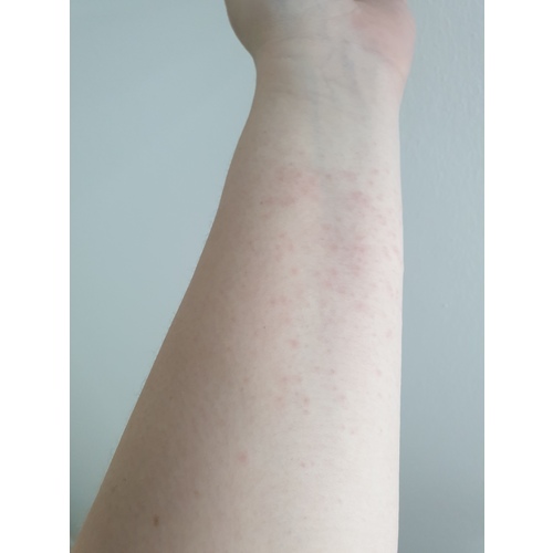Heb ook mijn hele onderarmen ermee onder gehad en werd gek van de jeuk.. ben toen langs huisarts geweest en die zei dat het leek op een vorm van eczeem. (Ookal heb ik dat voor de zwangerschap nooit gehad) hormonen doen veel met je huid..