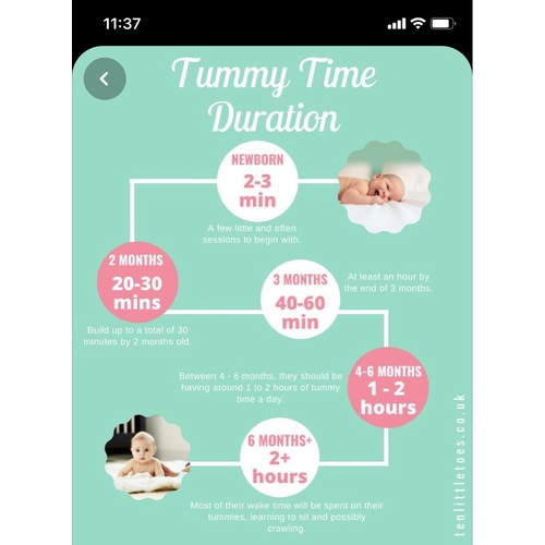 Ik hoop dat met die tijden bedoeld wordt dat ze over de hele dag hoeveelheid aan tummy time moeten hebben?? Ik kan niet eens 30 minuten op mn tummy iets doen😲🤭 dat kan mij mannetje zeker nog niet volhouden....
