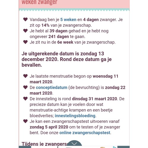 Dus volgens standaard berekeningen zou ik morgen precies 6 weken zwanger zijn, terwijl ik zelf denk dat dit er eigenlijk 5 zouden moeten zijn..