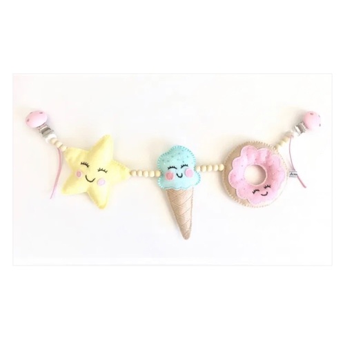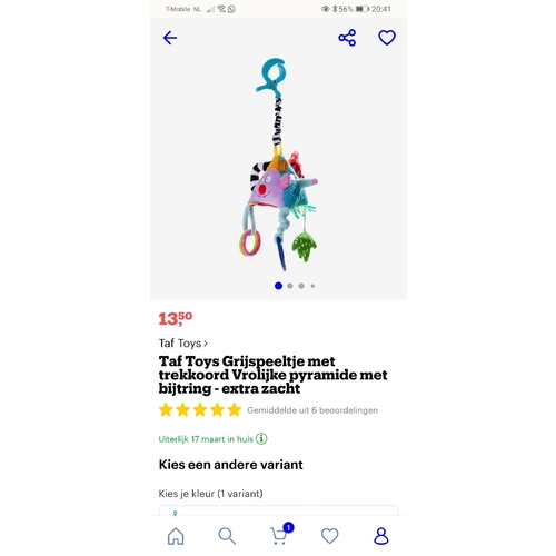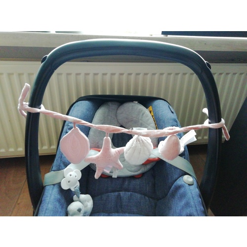 Deze hangt bij ons in de wagen. Dat ronde ding zit een belletje in, als die geluid maakt begint Yari te lachen... over een hobbelige weg is dus erg gezellig 😉