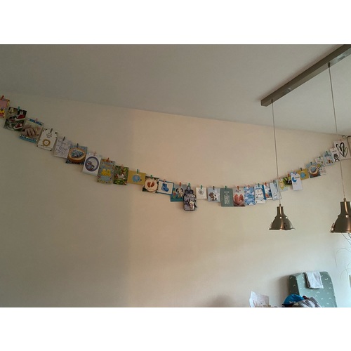 Het “nadeel” van deze vond ik dat veel kaarten groter zijn dan de cover die de bewaar bundel heeft. Daarom heb ik zelf de ringen los besteld en de kaarten gebundeld met de leukste voorop.