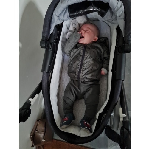 Ik heb vandaag in de duo wagen de reisweg vervangen door het zitdeel na overleg met de kinderfysio. Zolang hij niet echt zit maar lekker achterover kan hangen is het geen probleem om nu met 4 mnd 3wk over te gaan. Hij heeft een sterke nek en wil graag kijken.. weer een fase verder!