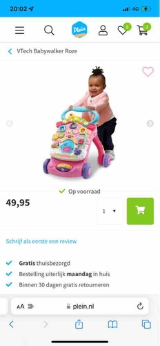 Ik heb ook zo’n looprekje, die voorkant kan er af en leg ik wel is los op de grond of in de box, als ze dat ding ziet dat draait ze zich meteen om zodat ze met dat ding kan spelen. Muziek en lichtjes is ze gek op. Nu als ze muziek hoort of als ik ga zingen en zij op haar buik ligt, leunt ze op haar handen en gaat ze van links naar rechts en trapt ze met haar beentjes als of ze aan het dansen is.