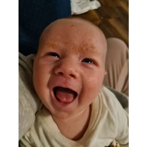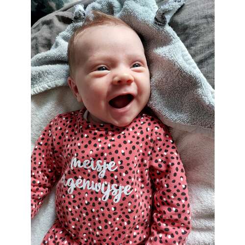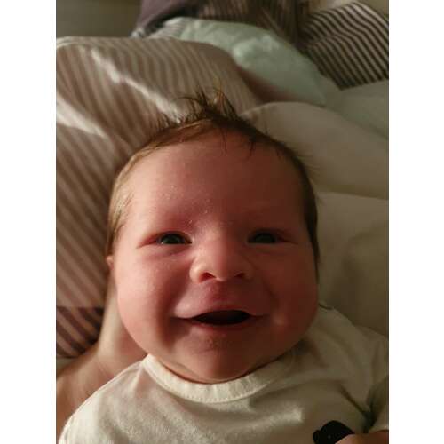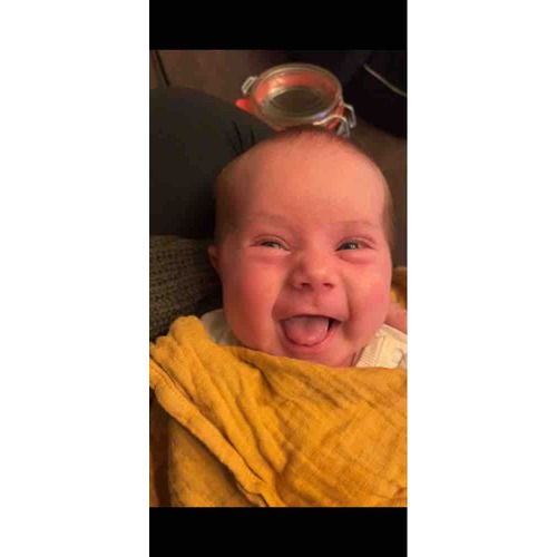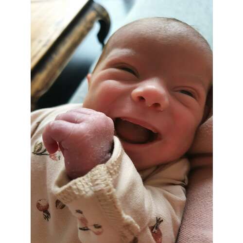 Hoe lief 😊, ons zoontje is ook 5 weekjes maar is vooral een boze baby 🙈 lacht enkel in zijn slaap