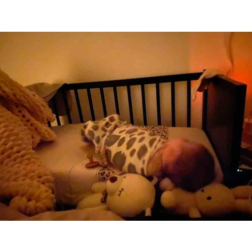 Ik snap dat je impuls is om haar in kinderwagen bak te laten slapen, maar dat is juist minder veilig! De zijkanten zitten dicht, dus als ze dan gaat bewegen komt ze misschien met haar gezicht er tegenaan. Dus alleen als je er zicht op hebt en niet als je zelf slaapt.