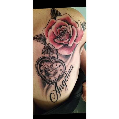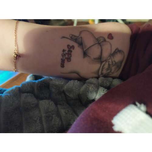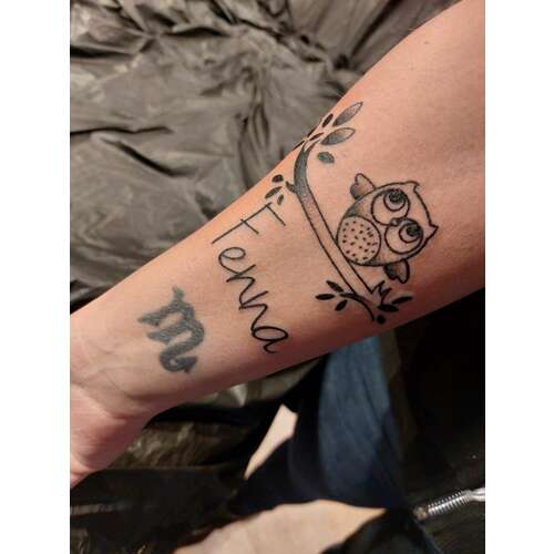 Ik wil voor beide dochters nog een tattoo laten zetten. De naam en geboortedatum onder elkaar in het lettertype van hun geboortekaartje.