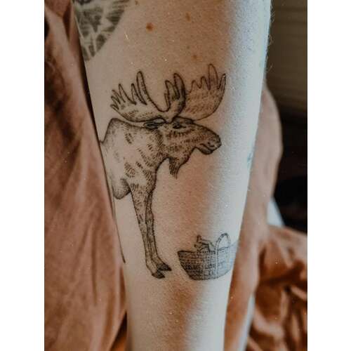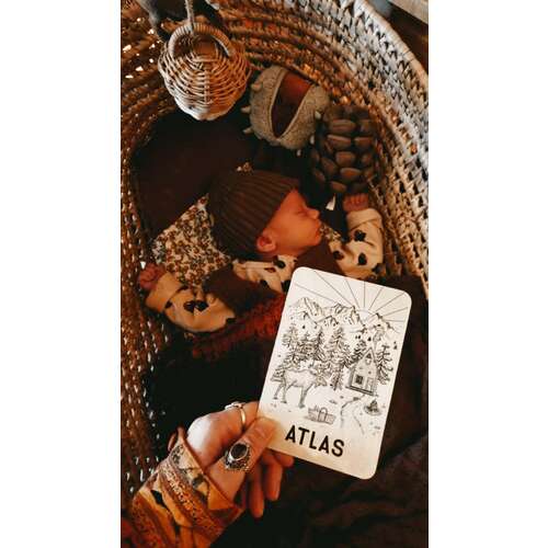 Ik heb de eland met mozesmand van zijn geboortekaartje (getekend door een vriendin) ♥️