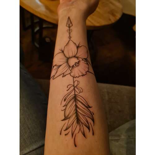 Ik heb deze, sterrenbeeld boogschutter. Op mijn andere arm heb ik het teken van Ram op mijn andere arm die voor mijn man staat. Hou het graag minimalistisch ☺️