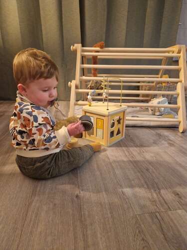 Wij hadden ook zoiets gekocht maar hij doet er niks mee.. terwijl hij wel graag de trap, bank en stoelen beklimt..