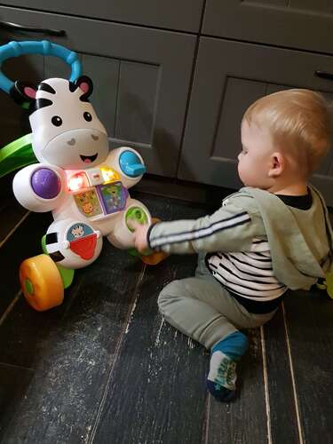 Mijn zoontje vindt de vriendelijke dierentractor van Vtech heel leuk. Hij begint de tractor nu ook al op en neer te bewegen, ziet er erg koddig uit 😍