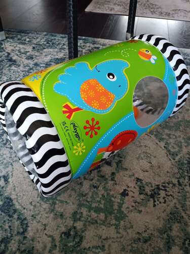 Dit opblaasding met rinkelballen is een hit op het moment hier.. hij tilt hem op, slaat, rolt ermee, kruipt er achter aan.. ben nog opzoek naar een leuke activiteitenkubus :)