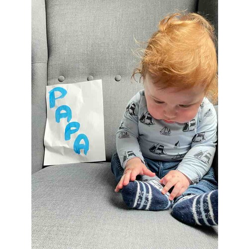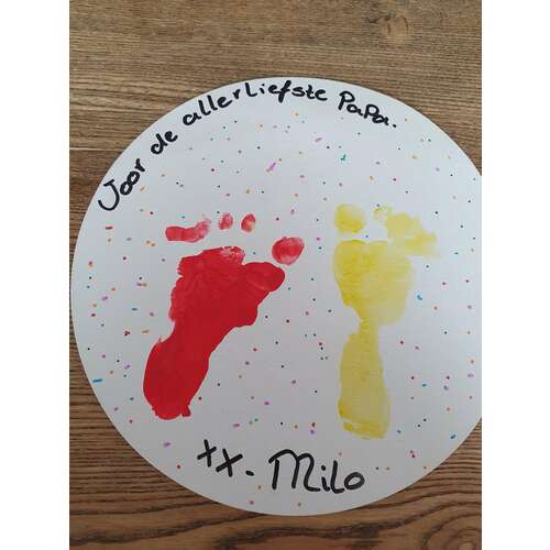 Ik heb een foto op hout laten afdrukken en een knutselwerkje met zijn voet afdrukken :