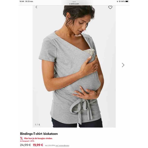 Had wel iets anders keuks gekocht bij C&A; en draagshirt heet het geloof ik. Een shirt waar aan de voorkant een soort draagdoek zit, waar je je kindje dus in kan wikkelen! Is ook gelijk een voedingstop, maar ook lekker om gewoon op de bank te buidelen of wat in huis te rommelen.