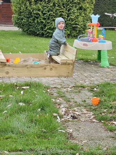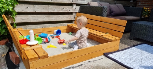 Stevig en ook met een deksel. Tevens staan deze zandbakken regelmatig op marktplaats.. dus daar zou je ook kunnen kijken; of je weet dat je m straks weer makkelijk doorverkocht krijgt.