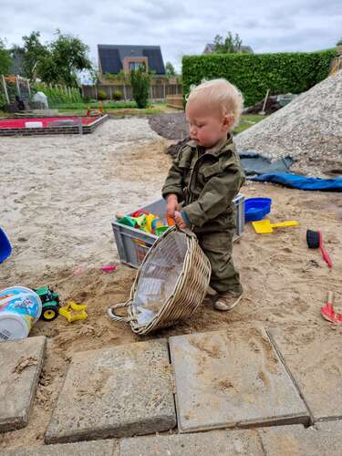 Moet wel bekennen dat meneer zn favoriete bezigheid het leegscheppen van de zandbak is馃ぃ