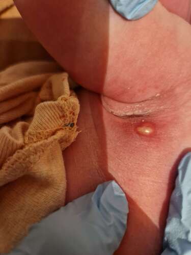 Dit had ons meisje ook. Ik heb de vk gebeld omdat het in het weekend was en eigenlijk alles net afgerond was. Ze heeft ons door gestuurd naar de kinderarts omdat ze bang was voor groep a streptokokken. In het ziekenhuis hebben ze het pukkeltje aangeprikt met een klein naaldje en leeg gehaald. Nadien heb ik fucidin gekregen en het gaat nu stekker beter. De bukt is zo goed als weg en ze heeft nergens meer last van.