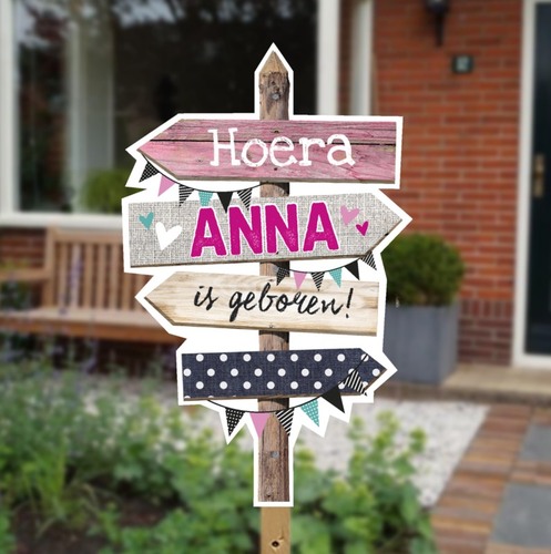Bij ons om de hoek staan er maarliefst 4 geboorteborden in de tuin 😁👍