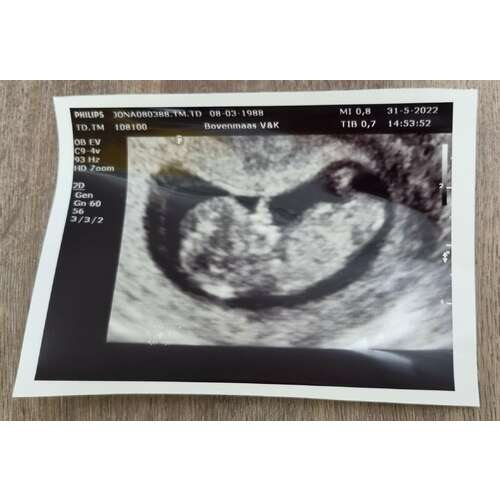 Gelukkig ook een goeie hartslag gezien en dit keer was het vruchtzakje ook mooi formaat. De vorige keer zagen we ook hartslag maar was het vruchtzakje wat klein om het vruchtje. Dit is toen mis gegaan. Dus extra spannend!