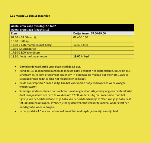 Hier precies hetzelfde; ook een zoontje van 14 maanden en een gezellige vroege vogel!馃槈 een periode ook 5 uur geweest. Het blijft soms nog wel wisselend maar meestal is hij rond 6:30 wakker sinds wij onderstaand schema aanhouden: