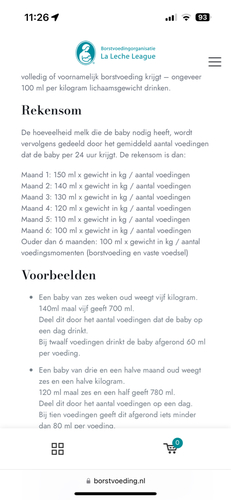 Maar sowieso zou ik deze formule met een korreltje zout nemen. Kijken naar de groei van je kindje en waar ze tevreden mee is.