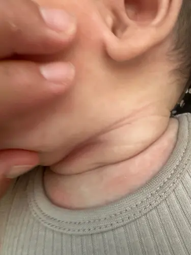 Dat rood in de plooien zijn meestal smetplekken. Dat krijgt elke baby. Zink ...