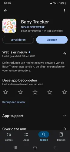 Ik heb denk ik een andere babytracker gedownload. Kan je een printscreen va ...