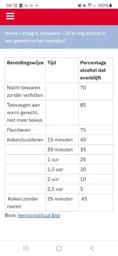 Ik lees veel mensen die heel simpel roepen het verdamt. Alcohol verdamt inderdaad maar niet zo snel, na 2 uur stoven is er ongeveer 90% verdampt dus echt nog niet alles.