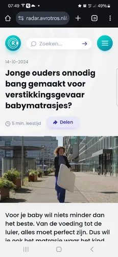 Inderdaad, zie hierbij de radar aflevering https://radar.avrotros.nl/artikel/jonge-ouders-onnodig-bang-gemaakt-voor-verstikkingsgevaar-babymatrasjes-60966