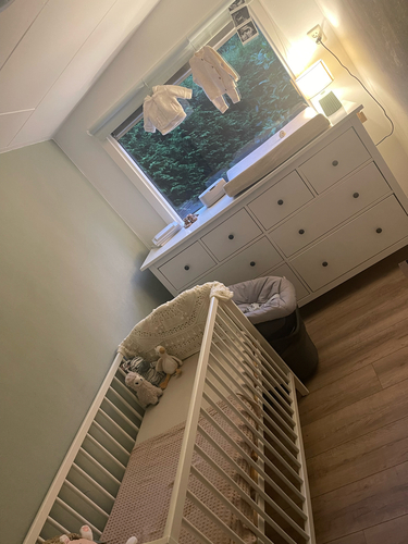Deze had ik al in mijn kleding kamer staan (niet speciaal gekocht)maar het kwam mooi uit dat ik deze al had. Te smal voor een aankleedkussen maar perfect voor een verschoningsmand.