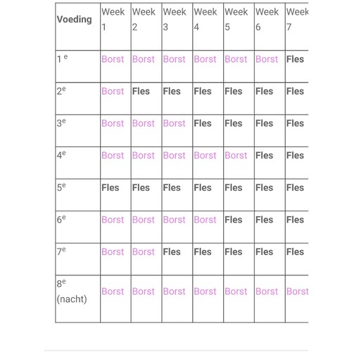 Dit schema is wel handig 😊 en oppassen voor borstontsteking, harde plekken masseren of even kolven totdat ze weg zijn ik was binnen een week ofzo melk loos..