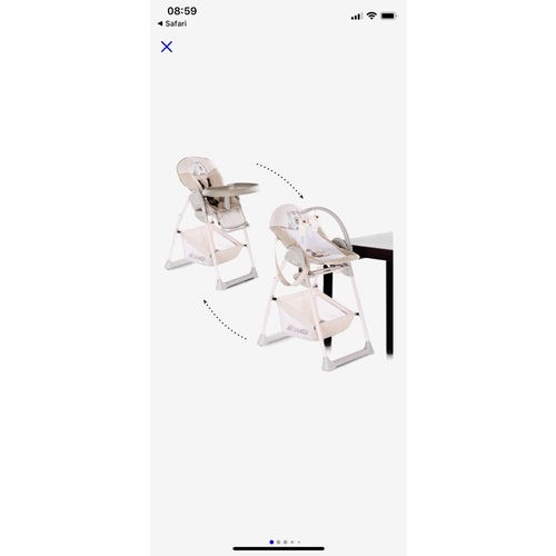 Wij hebben de hauck sit’n relax. Een soort wippertje die je omhoog en omlaag kan doen (dus aan tafel maar ook hoogte van de bank) daarbij zit ook nog een kinderstoel als ze straks wat groter is met een klein tafeltje. Er zitten ook nog wieltjes onder. Ik ben er erg tevreden over.