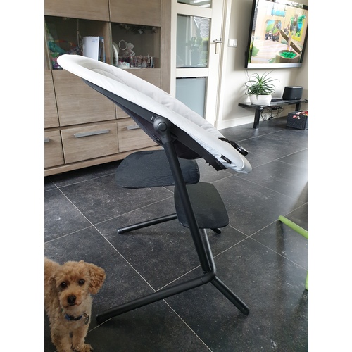 Ik heb deze Bloom Fresco cadeau gekregen. Ben er heel tevreden over. Ze ligt erin sinds ze geboren is en het gaat lang mee. Kan omgebouwd worden als een gewone stoel, kan op verschillende hoogtes gezet worden, heeft een tafeltje en een wieltje om het te verplaatsen. Ze zit er ook in wanneer wij aan tafel gaan, vindt ze geweldig. Heb ook de 4moms wip stoel, maar ligt te laag en heb dan last van mijn rug bij het geven van haar hapjes.