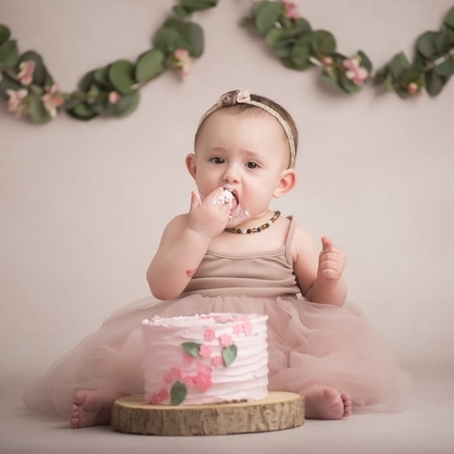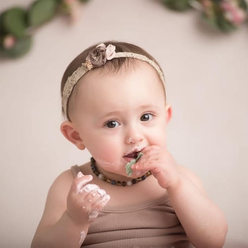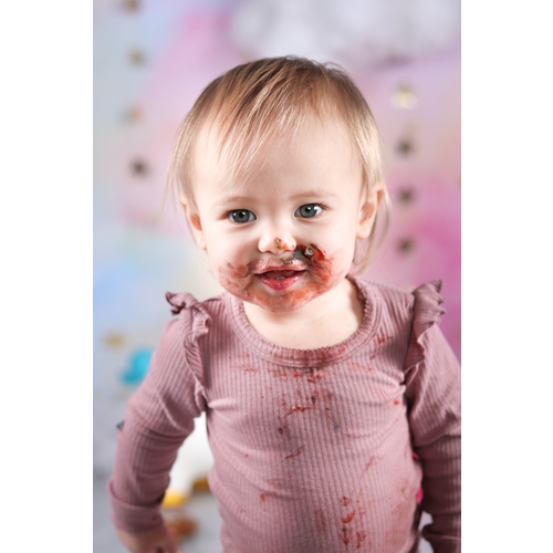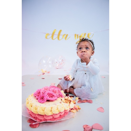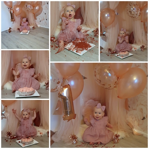 Het eerste half uur was keihard huilen, ze was bang voor de fotografe 🤷🏼♀️ uiteindelijk lukte het en vond ze het geweldig. Vooral het badje na de cakesmash vond ze leuk!