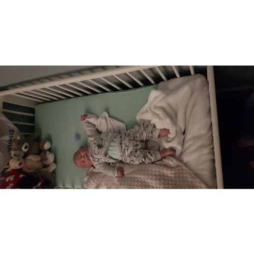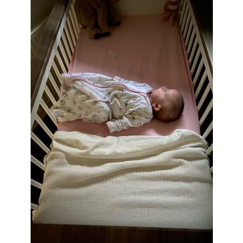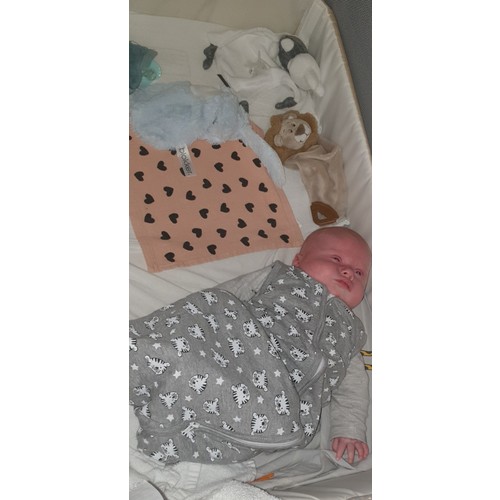 Zo vind ik de kleine ook elke ochtend. Helemaal in elkaar onderin die wieg 🤣 Ik geniet daar enorm van haha
