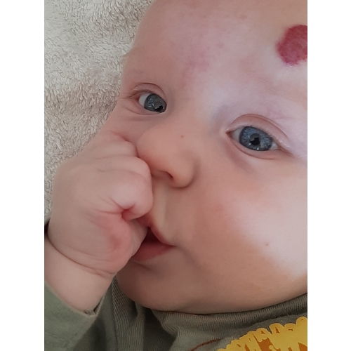 Hij is nu 4.5 maand oud, en pakt hem er zelf uit. Hij gebruikt zijn duim of een andere vinger om ook aan die zuigbehoefte te voldoen. 馃檪馃檭 lekkere natte handjes馃槀