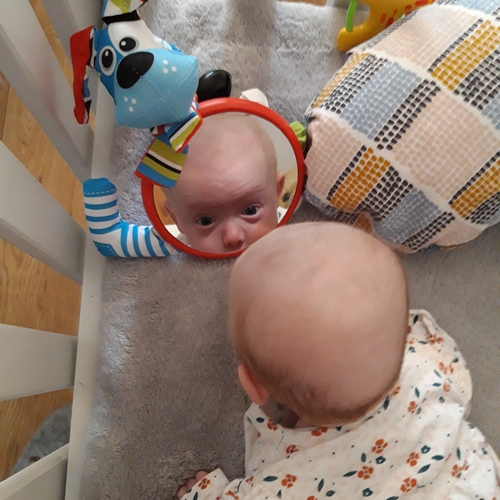 Eerst in eigen bedje slapen. Zodra hij uit bed komt meteen eten. Daarna als er behoefte aan is nog even knuffelen maar vaak niet nodig omdat hij al genoeg geknuffeld heeft tijdens de voeding. En dan spelen in de box. En bij ons speelt hij nog niet echt met speelgoed ofzo. Hij ligt vaak daar en dan draait hij zichzelf rond op zijn rug heel grappig😂 of kijk anar de box mobiel, ik doe die maar 1 keer aan. Of hij kijkt naar zijn eigen handjes.