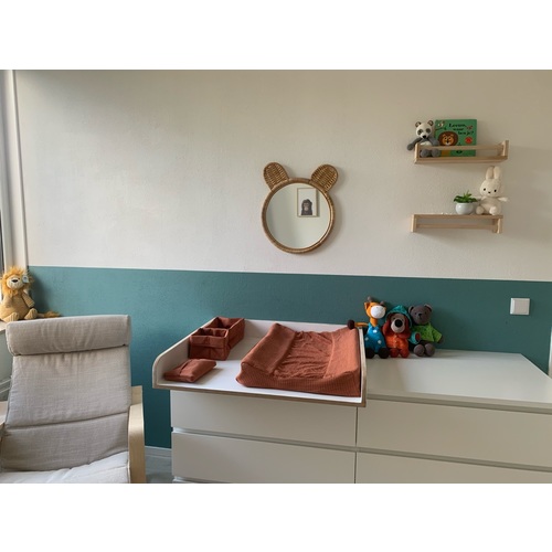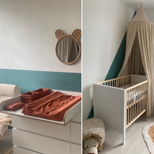 Wij hebben alles van baby’s only, stonegreen. Inclusief de verf zoals je kan zien. Commode, ledikantje en kast via marktplaats. Was in 1 klap verliefd 💚