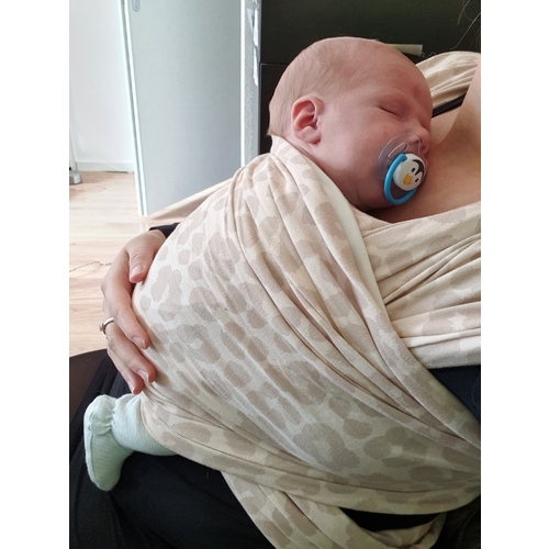 Mijn zoontje heeft soms ook erg huidhonger terwijl ik net in huis wilde gaan rommelen. De draagdoek is dan de oplossig. Hij lig lekker op mij en ik heb mij handen vrij!