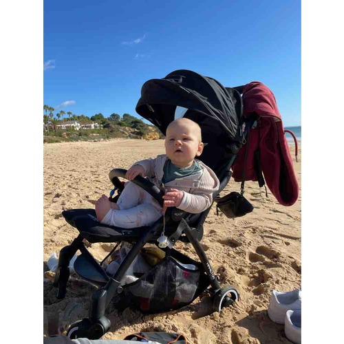 Wij hebben de Hamilton gekocht voor inderdaad een vliegvakantie. Mijn vriend is 1.90 lang en de duwstang is idd wat laag waardoor hij dicht tegen de buggy loopt met het risico dat je tegen de wielen stapt.