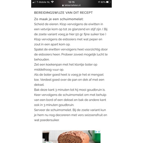 ik had echt nog nooit van schuimomelet gehoord dus ik heb gegoogeld. Het recept wat ik vond stond in dat be wel het hele eimengsel moet bakken dus als je het dan goed bakt zou het geen probleem moeten zijn. Maar jeetje wat een gedoetje hoor, eitjes scheiden/kloppen...pffff. Ik ga nu ook lekker wentelteefjes maken😄😄😄👍🏼👍🏼👍🏼👍🏼