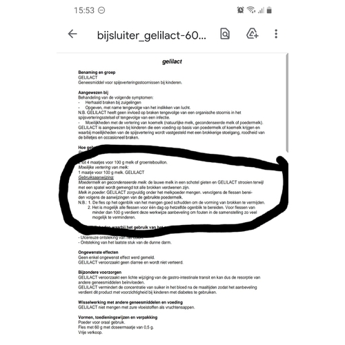 Idd gewoon de poeder mengen met een.lepeltje gelilact flesje verwarmen en dan alles in het flesje doen . Wij mixen dan.met een.melkmixertje en klaar . Melk is gelijk dikker . Hier geen.last meer van overgeven . Er staat in bijsluiter 2 tot 4 schepjes . Maar ik doe er maar 1 tje bij en vind de melk al dik genoeg . Mocht het niet verholpen zijn met 1 lepeltje kun je meer toevoegen . Maar hier is het niet nodig .