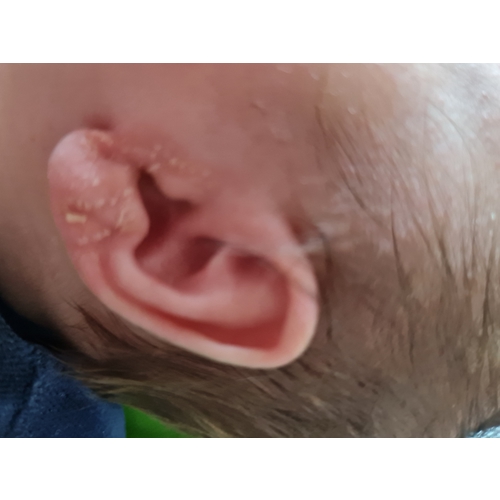 Mijn zoontje heeft dit ook. Nu al 4 weken en de afgelopen week zit het zelfs onder zijn haar. Zijn oortjes en gezicht zijn zo droog dat het schilfert. Vandaag word ik eindelijk terug gebeld voor een afspraak. Ben benieuwd wat het is